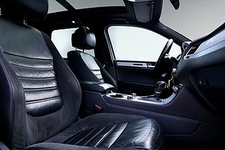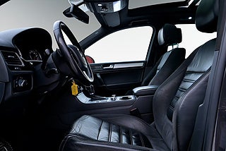 Välutrustad Volkswagen Touareg 3.0 TDI V6 med 245 hk och 4Motion fyrhjulsdrift. En kraftfull SUV med hög komfortnivå och omfattande utrustning såsom panoramaglastak, navigation och Area View/TopView med kameror runt hela bilen. Luftfjädring med adaptiva körprogram ger möjlighet att anpassa körkomforten efter behov.