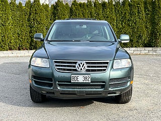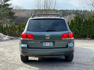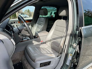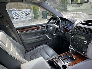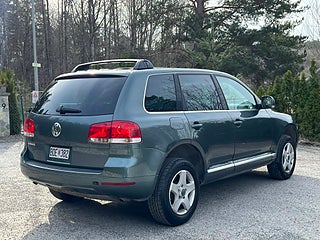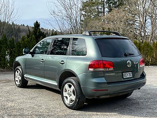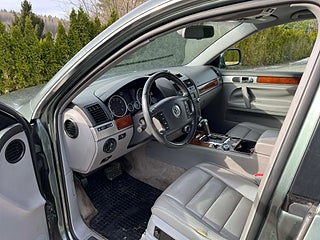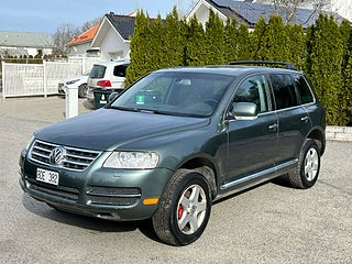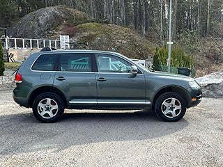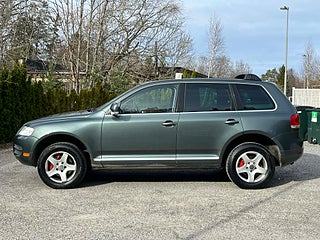 Nyinkommen Volkswagen Touareg 3.2 V6 4Motion med automatisk Tiptronic-låda och klassisk sugmotor på 220 hk. En kraftfull, komfortabel och mycket kompetent SUV med riktig fyrhjulsdrift och hela 3 500 kg dragvikt – perfekt för båt, hästsläp eller tungt släp.