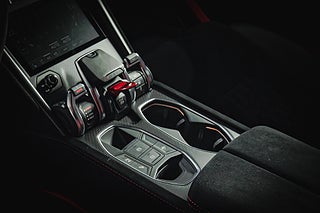Detta exemplar är lackerat i färgen Nero Helene med mattgrön stenskottfoliering, som i kombination med Pelope 23" fälgar i Svart ger ett mycket smakfullt intryck! Interiört är det svart Performante Alcantara nästan överallt med konstrastsömmar i 'Rosso Alala' (röd), vilket matchar bilens bromsok.