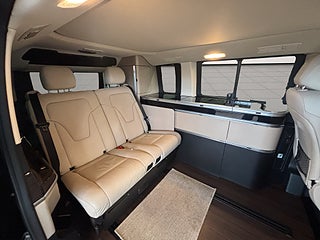 AMG Line, Akustik pkt, Distronic Adaptiv Farthållare, Alufälgar 19" AMG, Elektrisk taklucka i glas, Interiört design pkt, Madrass för bäddsäte, Kyl, Spis, Antracitfärgad sidomarkis på sidan, EL utfällbara sidorutor bak, Parkeringssensorer fram & bak, Mörktonade rutor bak, Smartphone integrations pkt, Säteskomfort pkt, Sound System, 360 kamera, Multisportratt med vxl paddlar, Lugano läderklädsel i sidenbeige, El infällbara sidospeglar, Dieselvärmare, El skjutdörr höger, EUR 6, Interiörpaneler i ebenholts mörk antracit, avåkningsvarnare, döda vinkelvarning, Sound system, El baklucka, El uttag, Pop up tak, sovplatser upp till 4 personer, Mörkläggande gardiner för bakre rutor, Apple CarPlay, Android Auto.
