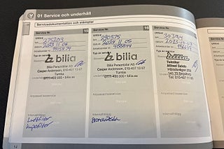 Fordonets historik - 18 händelser finns registrerade
