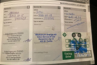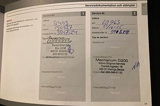 Fordonets historik - 20 händelser finns registrerade