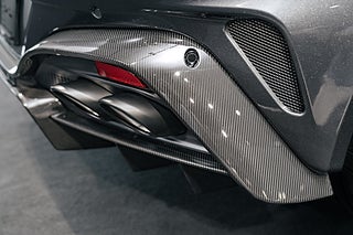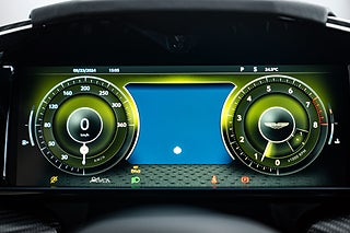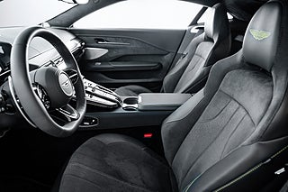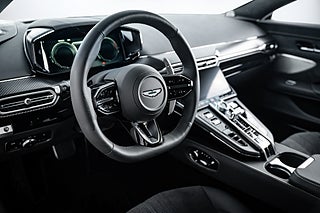 Inuti möts du av en interiör som andas lyx och hantverksskicklighet. Vantage Coupé erbjuder en interiör klädd i handsydda läderdetaljer, högkvalitativa material och den senaste tekniken. Inredningsfärgen på denna bil är Phantom Grey i kombination med en Contrast stitching. Det avancerade infotainmentsystemet, med en högupplöst pekskärm och ett exklusivt ljudsystem från Bowers & Wilkins, säkerställer att varje resa blir en njutning. Föraren kan anpassa sin körupplevelse med ett brett utbud av körlägen som optimerar både komfort och prestanda, oavsett om du vill njuta av en avslappnad tur eller pressa gränserna. Även i kupén finns en del Carbondetaljer som väl går ihop med bilens övriga inredningsdetaljer.