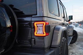 Nu i lager en riktigt fin och välvårdad Jeep Wrangler Unlimited 4xe PHEV 380hk SAHARA 2021 med exteriör i grå metallic med svart läderinteriör och endast 1200mil!