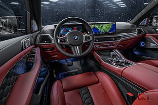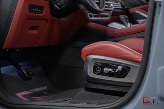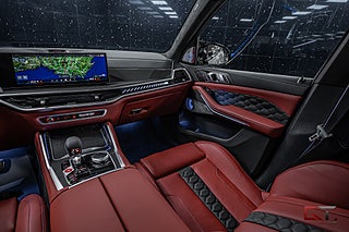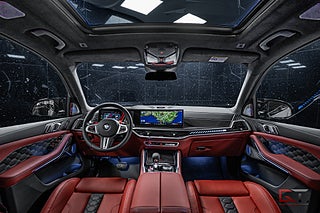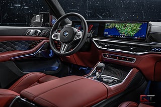 Detta exemplar har ett kaxigt utförande med lacken "M Brooklyn Grey Metallic" som kombineras med 21" stora fälgar och svarta detaljer runt om. På insidan finner man en minst sagt sportig och kontrastrik kupé med multifunktionella säten klädda i den färgglada helläderinredningen "Sakhir Orange" och framför föraren finner man den läckra M ratten i läder. I den främre raden kan man avnjuta såväl värme som ventilation och härlig massage. Dekorinläggen klär kupén exklusivt med intag av kolfiber och det kombineras bland annat med det påkostade diamond-surroundljudsystemet från Bowers & Wilkins, samt med det stora och öppningsbara sky lounge-panoramaglastaket som genomsyrar den tyska kupén.