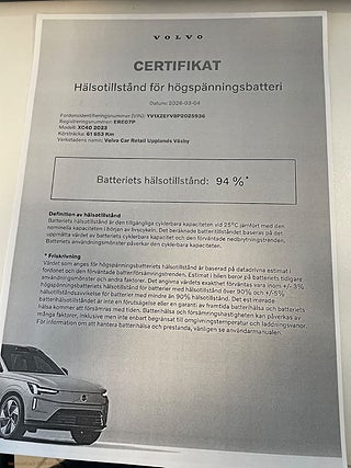 MärkeVOLVOFordonsår2022I trafik2023-01-09MiljöklassELUtsläppsklassELFärgSvart