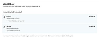Fordonets historik - 11 händelser finns registrerade
