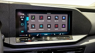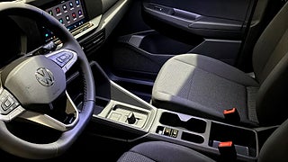 12v-uttag i instrumentpanel och i lastutrymmet, Ersätts av parkeringsvärmare 9m9 -utan hjälpvärmare, Förberedelse för "we connect" och "we connect plus" 12 mån, Keyless go. centrallås med safelock (kräver larm: 7al/7as samt 6ff svartlackade ytterbackspeglar), Radio "composition" 10" pekskärm med färg och 4 högtalare, Reservhjul i stål med normaldäck inkl. fordonsverktyg och domkraft, Stöldlarm kupéövervakning backup - signal och bortbogseringsskydd, Svartlackade ytterbackspegelhus dörrhandtag i bilens färg och skjutdörrskena i silver, Vänstersäte med ergocomfort "agr" säte. högersäte med höjdinställning och manuellt inställbart svankstöd