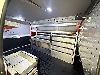 Utrustningen inkluderar bland annat: Facelift, Stort skåp, Verkstadsinredning, Takräcke, Parkeringssensorer, Sätesvärme, Värmeisolerande rutor, Pekskärm, Bluetooth, Farthållare, Multifunktionsratt, Läderratt, Follow-me-home-ljus, Guideljus, Regnsensor, Backstartassistans, Bromsassistans, Hyllor, Work System, m.m.