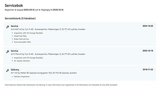 Fordonets historik - 14 händelser finns registrerade