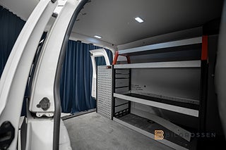 Bilen är utrustad med fjärrstyrd dieselvärmare, vilket säkerställer en varm och startklar bil under kalla morgnar. Lastutrymmet är verktygsinrett, vilket gör den idealisk för hantverkare och företag som vill ha en färdig arbetsbil direkt. För extra flexibilitet finns dragkrok för släp eller extra last, farthållare för bekväm långkörning samt 2 sittplatser fram.