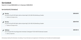 Fordonets historik - 7 händelser finns registrerade