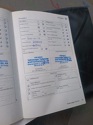 Fordonets historik - 29 händelser finns registrerade