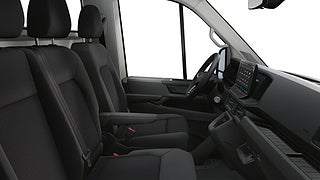 2-sitssoffa i förarhytten med förvaringsfack höger, 4 st 12v-uttag i förarhytten (tre i instrumentbrädan ett i vänster sätesram), Ändbalk i smalt utförande med l = 1 149 mm och h = 225 mm skruvad, Bågytterbackspegel (registreringsbar från en påbyggnadsbredd på 2 160 mm). positionsljus på taket, Ett 2:a batteri med brytrelä för högström och övervakningsfunktion (bra vid bakgavellyft och kran agm-batteri), Extra vattenvärmare. parkeringsvärmare programmerbar i kombination med climatronic inkl. fjärrkontroll, Fjädrande säte "ergoactive" i 1:a sätesraden vänster, Förberedelse för "we connect" och "we connect plus" 12 månader, Förstärkt fjädring/dämpning och förstärkt krängningshämmare fram/bak., Förvaringspaket 2: takfack med två 1 din-fack och läslampa, Multifunktionsratt i läder och tiptronic uppvärmbar, Radio "composition" 10" pekskärm med färg och 4 högtalare, Strålkastarspolare med indikator för spolarvätskenivå utan uppvärmda spolarmunstycken