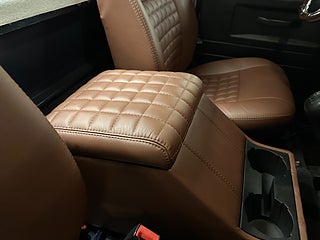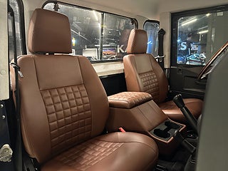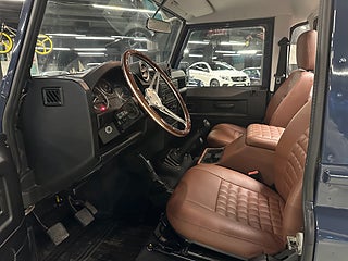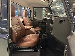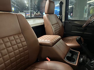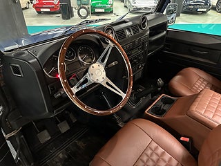 Mycket fin och påkostad Defender med enkelhytt. Bilen har klätt flak i teak med infällda skenor med lastfästen samt specialinredning i cognacsbrunt exklusivt läder, Exklusiv ratt i rostfritt stål/ädelträ.