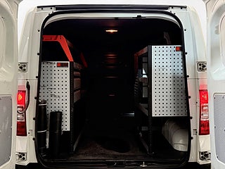 Utrustningen inkluderar bland annat: Verkstadsinredning, CCS Snabbladdning, Sätesvärme, Backkamera, Pekskärm, Apple CarPlay, QDLink, Bluetooth, Läderratt, Multifunktionsratt, Farthållare, Eco-läge, Bromsassistans, Däcktrycksmätare, Alu-fälgar, Hyllor, Serviceinredd, m.m.