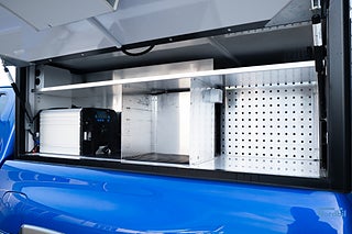 Vidare finns en kraftfull inverter (12–230V, 2500W) installerad, vilket gör att du enkelt kan driva elektrisk utrustning direkt från bilen optimalt för arbete ute på fältet.