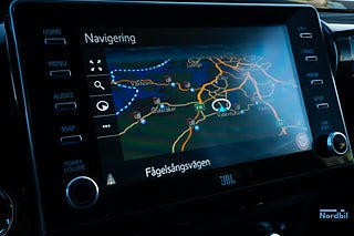 Invändigt erbjuds hög komfort med skinnklädsel, sätesvärme, klimatanläggning, JBL Premium ljudsystem och modern infotainment med Bluetooth, DAB och pekskärm.