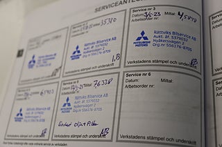 Fordonets historik - 8 händelser finns registrerade