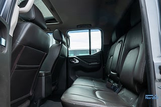 Denna Navara kombinerar robust pickup-konstruktion med komfortutrustning som läderklädsel, elstol, sätesvärme och klimatanläggning. El-taklucka ger en luftig känsla i kupén medan den automatiskt avbländande innerbackspegeln ökar komforten vid mörkerkörning.