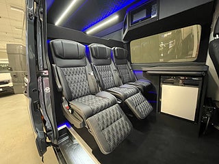 - Crossbuss med sovalkov, 3 säten i ett led. Sovalkoven tar utrymme från lastutrymmet, sängen fortsätter ovanför stolarna, utdragbar sängdel.