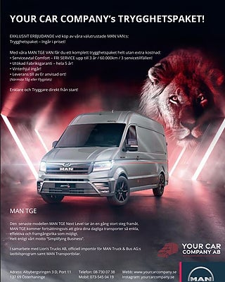 Med våra MAN TGE VAN får du ett komplett trygghetspaket helt utan extra kostnad: