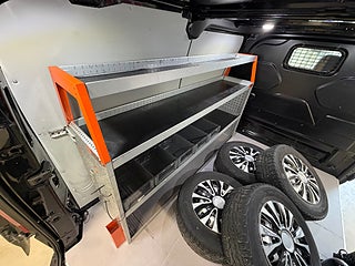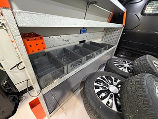 Svensksåld. Endast 1 brukare sedan ny. Svart. Automat. 130hk. Skåp. Lättmetallfälgar sommar. Komplett SoV-hjul. Verkstadsinredning. Work system inredning. Extra Blackstone lås dörrar. Dragkrok. Integrerade takräcken. Dieselvärmare m. fjärrkontroll. Backkamera.