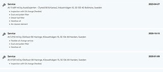 Fordonets historik - 11 händelser finns registrerade