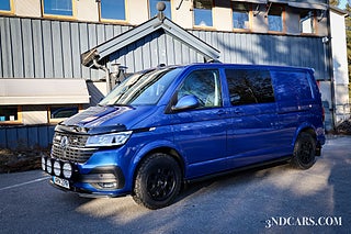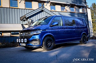 Avdragbar moms för företag, leasing från 0:- kontant! Transporter kombi 5-sits med grym spec och det där lilla extra! Ravenna Blue Metallic, Extra ljudbygge, Parkeringsvärmare, Comfort Package, Discover Pro, Lights & Vision, Smoker's Package, Backkamera, Infällda extraljus Lazer Elite, Vindavvisare på huven, Frontspolier I nederkant, Sidebars, Vindavvisare baklucka, Farthållare adaptiv, Delta fälgar, BF Goodrich, Aluminium vinterhjul, Dubbla predator baslådor, Alpine diskanter mm!