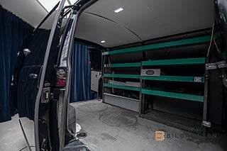 Utrustningsmässigt är bilen mycket välförsedd och anpassad för arbete. Den är av L1-modell och utrustad med backkamera, parkeringsvärmare, navigationssystem, tre sittplatser fram, uppvärmt skåp och verkstadsinredning. För ökad komfort och funktionalitet finns även farthållare, dragkrok samt Apple CarPlay som gör det enkelt att koppla upp mobilen och få tillgång till samtal, musik och appar direkt i bilens system.