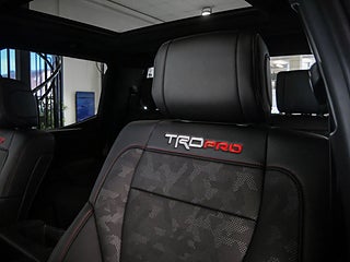 TRD Pro Package – TRD Pro Off Road Suspension med 1.1 tum höjning fram samt 2.5 FOX internal bypass coil overs fram och FOX remote reservoir shocks bak – 18 TRD Pro Black Forged BBS Wheels – P285 65R18 däck – TRD Skid Plate – Xply Armor hasplåtar för motor bränsletank och transfer case – TRD Pro front stabilizer bar – Multi Terrain Monitor – Premium Triple Beam LED Headlamps – Sequential LED Tail Lamps – TRD Heritage Toyota Grille med LED Light Bar – TRD Pro Stamped Tailgate – Black Dual Exhaust med TRD logo – TRD Heated Steering Wheel – Active Noise Control –