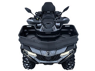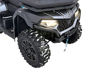 ”Design och utförande får toppbetyg och det får också ergonomi och förarplats” ”Nya displayen – en av de bästa i branschen” ”Vi drar fram en älgtjur med den och det går otroligt bra, trots att älgen väger sina modiga kilon och terrängen är svår” ”Den elektroniska styrservon fungerar perfekt och det gör även vinschen, LED-belysningen och fjädringen” ”Grymt bra jobbat CF Moto – den här fyrhjulingen gillade vi mycket!”
