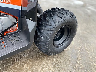 Motor: Slagvolym: 110 cc Effekt: 6, 8 hk/8 000 varv Hjulupphängning fram: Dubbla A-armar, dubbla stötdämpare Hjulupphängning bak: Swing med enkel stötdämpare Frambroms: Dubbla skivor, hydrauliska Bakbroms: Hydrauliskt skiva Hjul fram: 8" Hjul bak: 8" Fälgtyp: Stål