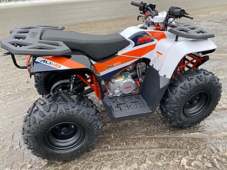 Maskinen är utrustad med lastrack i fram och bak och har en 110 cc 4-takts motor med fram och back och automatväxel. Fin gång i motor och lite större hjul än konkurrenterna gör den extra trevlig att köra.