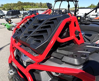 Den upphöjda kylaren är inte bara en visuell signal – den är en avgörande komponent för att bibehålla prestanda när leran stänker, vattnet skvätter och fläkten annars riskerar att ge upp. Tillsammans med det förstärkta skyddet och det grova fotfästet är detta en maskin byggd för verklig offroadkörning, där både du och din maskin måste kunna lita på varandra.