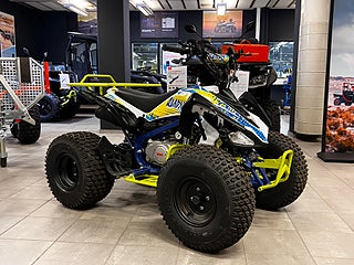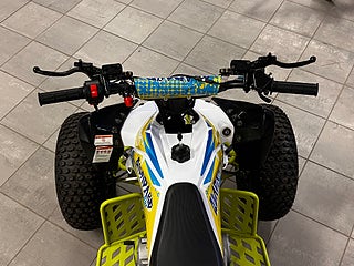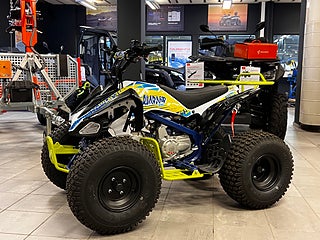 Fyrhjulingen är även utrustad med dödmansgrepp, det vill säga en säkerhetsbrytare som bryter och stänger av motorn, om olyckan skulle vara framme. Vi rekommenderar att barnen använder hjälm och lämplig skyddsutrustning.