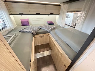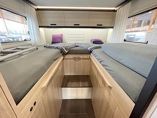 Rymlig och välplanerad Alkov-husbil med automat, godkänd för B-körkort och hela 6 bäddar. Endast 1 995 mil – i mycket fint skick. Utrustad med EL-patron för smidig och bekväm uppvärmning.