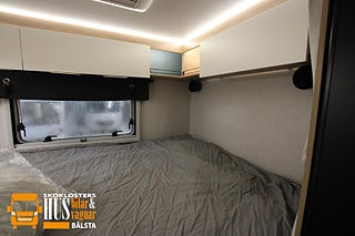 Modellår: 2026, Karosstyp: Halvintegrerad, Värmesystem: Truma Diesel - luftburen fläktvärme, Spillvattentank - frysskyddad, Färskvattentank - frysskyddad, Fönster med mörkläggning/myggnät, Klimatanläggning - bildel, Lastluckor - dubbla till garage, perfekt för dig som letar efter en plåtis men vill ha lite mer rymd känsla, Teknikst dubbelgolv delvis uppvärmt, stort duschutrymme utfällbar vägg, En bekväm husbil på 6.30 m, lika kompakt och smidigt som en plåtis !