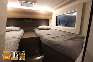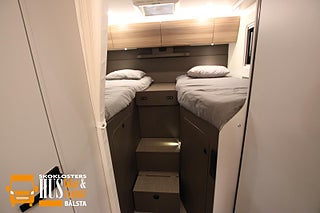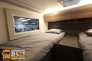 Denna bil får köras med vanligt B-körkort. Mycket populär planlösning med långbäddar bak och taksäng fram - en modell som passar väl för 4 personer. OBS pristillägg för taksäng: 18.490 kr (Totalpris inkl taksäng: 1.018.390 kr). Denna bil är även möjlig att få utan taksäng - kontakta oss för mer info.