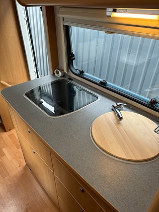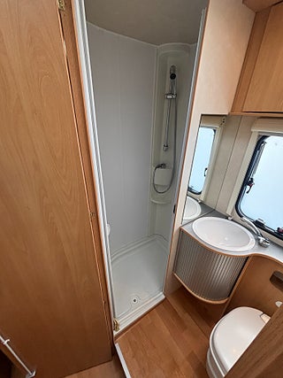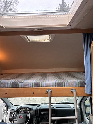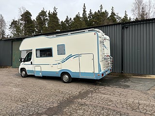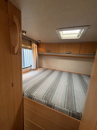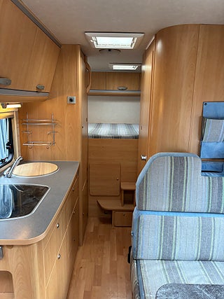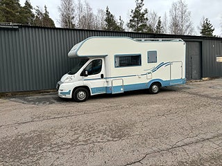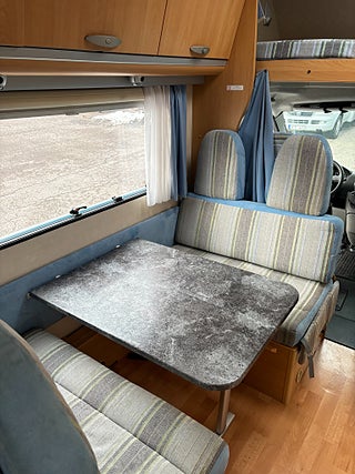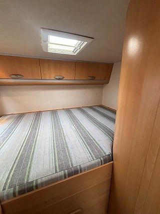 Välvårdad husbil med plats för hela familjen och med totalvikt på 3500 kg som gör det möjligt för alla att köra den på vanligt B-körkort. Längst bak rymlig tvärbädd för 2 personer, under stort garage med stora lastluckor från båda håll. Badrum med rymlig dusch, handfat och kasettoalett. Kök med 3-lågig spis och gott om arbetsyta. Stort kylskåp med separat frys. Dubbeldinnet som även går att bädda ner till 2 bäddar. Längs fram stor alkov för 2 personer. Finansieringsexempel : 2950 kr/mån