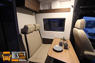 Mercedes-Benz Sprinter 3880kg 417 CDI 170 hk, Beige full leather with quilting (upholstery), Closing aid sliding door right (electric), Winter pack (chassis)Innehåll:Seat heating for Mercedes Benz original seatsWet Wiper System (Windshield wiper with integrated spray nozzle)Steering wheel heatingHeat-insulated cab, LED High Performance headlights strålkastare, Navigation for MBUX system, Panoramic roof hood front, 3.25 m markis (anthracite) with dimmable LED lighting, Radiator grille frame & bumper painted in body color, Outdoor shower connection & holder, Clesana Waterless wetting toilet, My Bürstner App: Control Unit, Winter pack (Bürstner)Innehåll:Waste water tank electrically heated (heating rod)Electric drain valve for waste water tankDisposal hose (waste water hose set) in receiving pipeElectric heating rod (for diesel hot water heating), Comfort pack (chassis)Innehåll:Cup holder, frontHinged lid for storage compartments left and rightInstrument panel charging packageElectric parking brakeHigh beam assistantSmartphone integrationWireless charging, Automatic & Tech pack (chassis)Innehåll:9G-TRONIC automatic transmission incl. hold functionTraffic sign assistantSteering wheel, leather (with automatic transmission)Active Distance Assist DISTRONIC PLUS incl. steering wheel multifunctional buttons, Comfort pack (Bürstner)Innehåll:Fabric interior claddingFolding darkening cabPleated fly screen for sliding doorAdditional cushion for converting single beds to double bedKitchen worktop extensionFramed windowIndirect lightingSmart battery lithium 100Ah