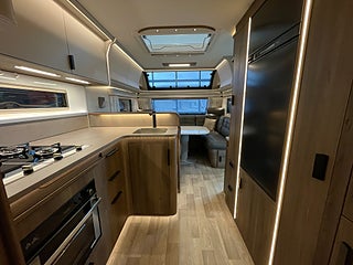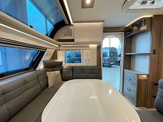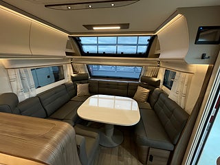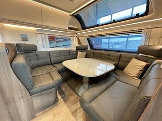 Royal 600 CXL har ett vinkelkök och en stor, rymlig soffa. Toalett med separat dusch kabin (DXL) finns som tillval. I soffans ryggstöd, mot köket, finns en höj- och sänkbar TV som lätt kan döljas när den inte används.
