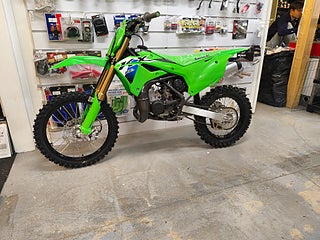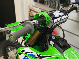 En större framskiva Ø 240 mm, kombinerad med samma bromsok och huvudcylinder som används på KX250, ökad hållbarhet och bättre kontroll. Bak finns en större skiva Ø 220 mm och minskat spel i bromsspaken, vilket ger mer exakt bromskontroll