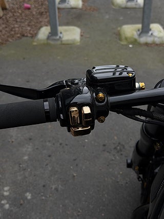 Guldfärgade knappsatser på styret