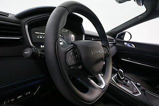 Lynk and Co 01 PHEV är en modern mellanstor SUV som kombinerar stilren design med smart teknik. Den svarta färgen tillsammans med det stora panoramaglastaket och eldrivet soltak ger en ljus och exklusiv känsla i kupén. Den eldrivna bakluckan gör lastning enkel i vardagen och bagageutrymmet på 466 liter ger gott om plats för både resor och vardagsärenden.