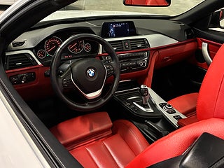 En BMW 428 i xDrive Cab Alpine White med Röd dakota skinnklädsel, nackvärme, klimatanläggning, Parkeringssensorer och mycket annat.