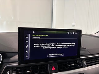 **KGR71P** Nyinkommen Audi A4 finns redo för omgående leverans. Bilen är utrustad med bl.a cockpit, dragkrok, dieselvärmare, navigation, parkeringssensorer, adaptiv farthållare, elbaklucka och Apple Carplay.