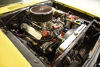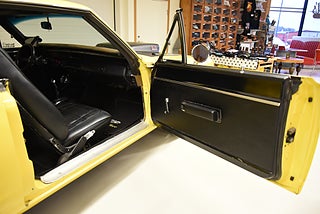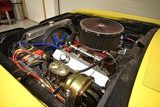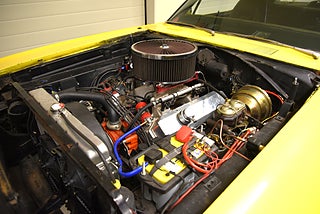 V8 440 ombyggd 2014 och strokad till 512cui. Aluminium toppar från edelbrock. MSD tändning. Edelbrock bränsleinsprutning. Holley tank med inbyggd EFI bränslepum. 727 3växlad automatlåda med manuellt ventilhus och reverserade lägen som är förstärkt. 3000rpm konverter sitter monterad nu i bilen och fungerar utmärkt. 8 ¾ bakaxel med med Sure-Grip Posi diff och 4.11 i utväxling. Bromsskivor fram och trummor bak med servo. Bilen blev omlackerad sent 90 tal i nuvarande kulör och den har sina skavanker men i sin helhet så skäms den inte för sig. Inredning i svart vinyl där det finns en del torrsprickor i instrumentbrädan och ovansidan på ryggstödet bak men i övrigt riktigt trevlig. Modern stereo med AUX USB samt slutsteg i bagaget. Bälten finns på alla platser. Kromet runt bilen håller ett bra bruksskick. Center Line fälgar med 225/60-15 fram 255/60-15 bak med ca 4 fram och 7mm bak i mönsterdjup. Framdäcken är något snedslitna så en framvagnsjustering kanske behövs. En riktigt härlig Coronet 440 i ett allmänt fint bruksskick som sticker ut rejält med den gula lackeringen och det härlig ljudet från motorn. Så är du sugen på en muskelbil som du kan använda utan att vara super rädd om bilen så ska du titta lite extra på denna. Motor bytet är inskrivet hos Transportstyrelsen.