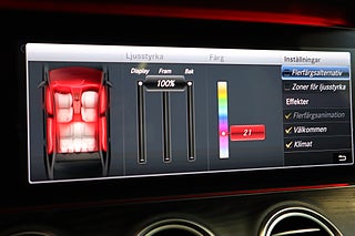 Burmester ljudsystem, Auto-Hold bromsfunktion, Interiör stämningsbelysning i olika färger, Touchpad i mittkonsol samt ratt, Multibeam LED Strålkastare, 20" sommarhjul, Val av körprogram, Airmatic luftfjädring med höjbart chassi, Mercedes me, med mera.