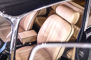 This lovely blue-over-tan E-Type Series III is equipped with the legendary 5.3-liter Jaguar V12 coupled with the grand touring suitable 3-speed automatic gearbox. This specimen is also equipped with power steering and brakes as well as air conditioning, making it an ideal grand tourer for those desiring modern amenities.